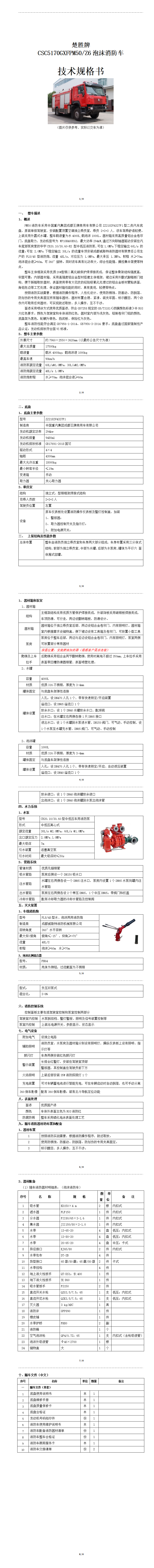 楚勝牌 重汽豪沃PM50/Z6 4×4 泡沫消防車
